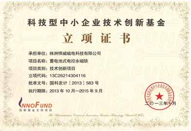 通過國家高新技術(shù)企業(yè)認證;獲得國家科技型中小企業(yè)技術(shù)創(chuàng)新基金資助; 國內(nèi)首套40噸吊鋼坯用電永磁吊具成功出口南美.