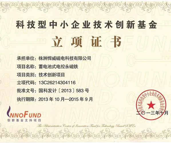 創(chuàng)新基金立項證書